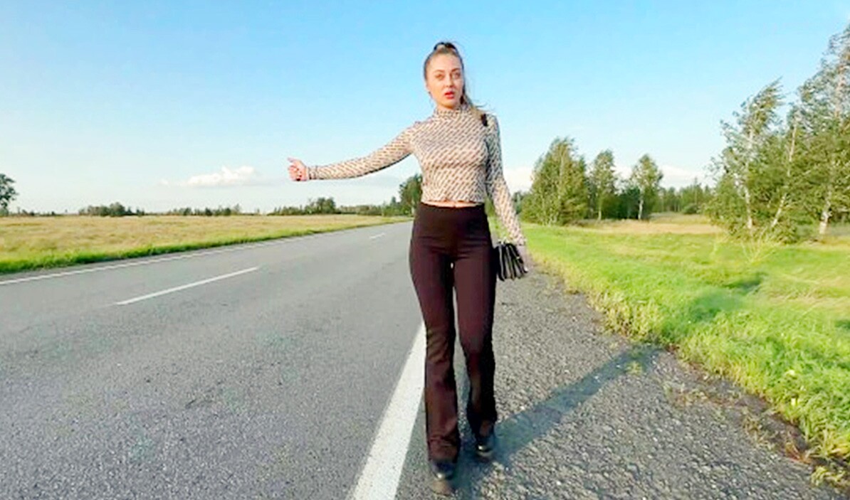 年轻情侣搭便车并愿意在公共场合做爱