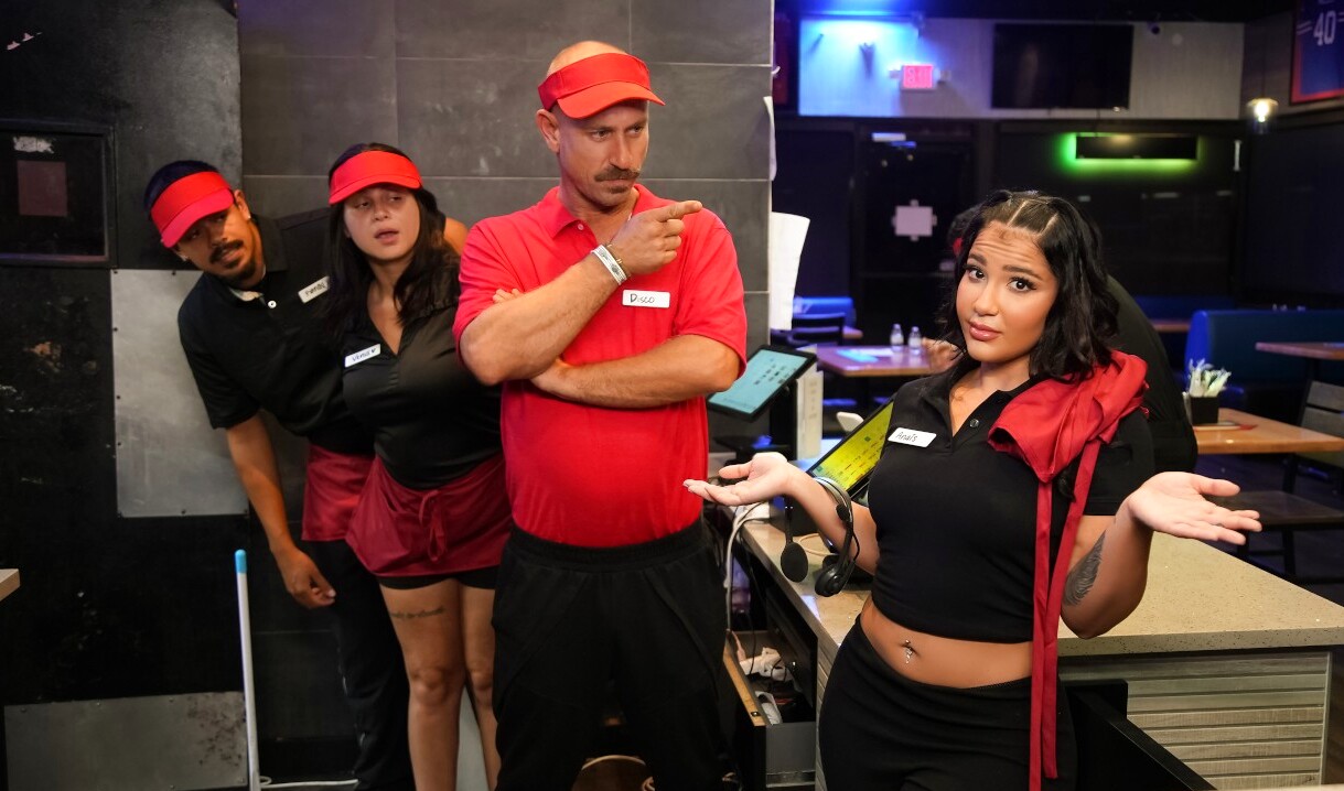Парни из ремонтной бригады трахают свою аппетитную коллегу...