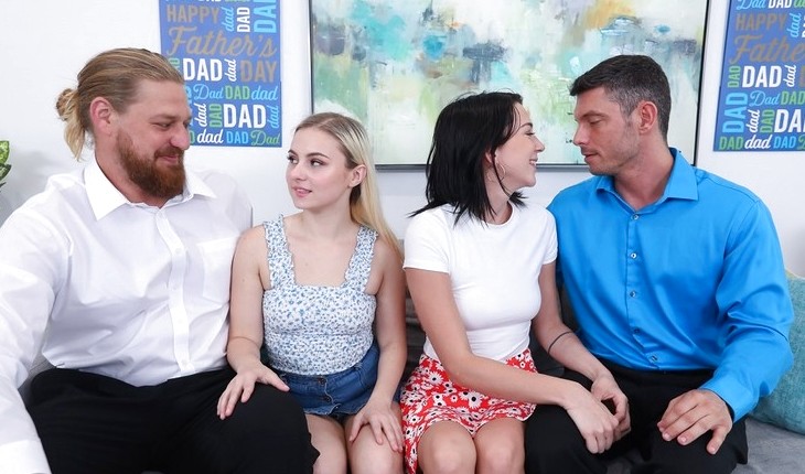 Раскосые девушки теряют девственность во время группового секса с отчимами